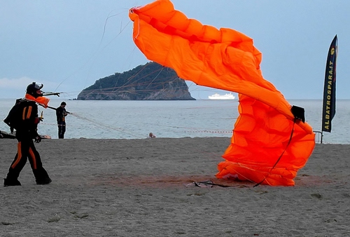 Paracadutista sulla spiaggia di Spotorno.