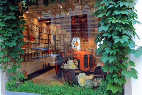 Tag: trattore, vetrina, verde, foglie, riflesso, edera, piatti, vetro.