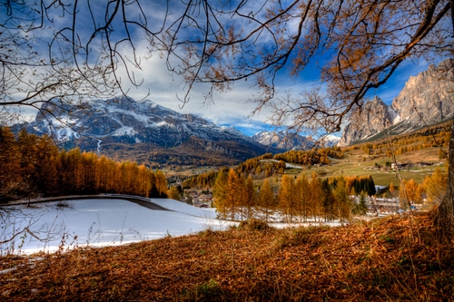Tag: rami, neve, autunno, alberi, montagna, montagne, paesaggio, giallo, lago, bosco.