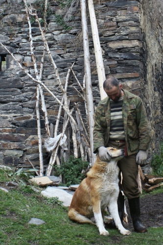 Un pastore scambia effusioni con il suo cane