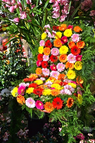 È un allestimento floreale di una bancarella alla fiera di primavera di San Giuseppe. |