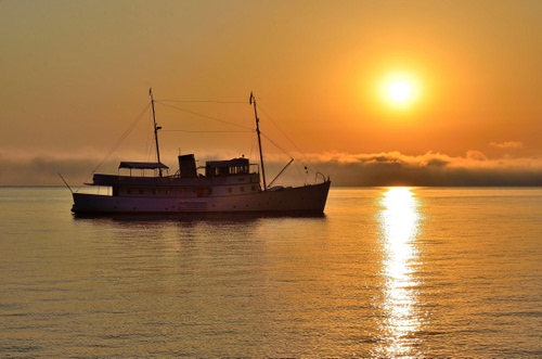 Barca d'epoca all'alba