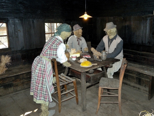 Tag: sedie, tavolo, polenta, legno, tre, lampada, paglia, pupazzi, contadini, cappelli.