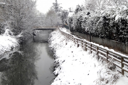 il canale, il ponte e la pista ciclabile con la staccionata, se non c'era la neve passava tutto inosservato