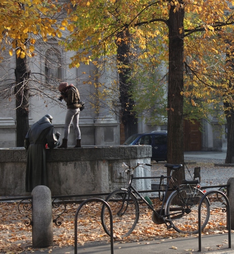 Fotografa sconosciuta in Piazza Sant'Angele a Milano.