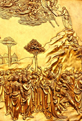 Mosè riceve le tavole della Legge - formella di un portale dorato del Battistero di San Giovanni - Firenze Piazza del Duomo.