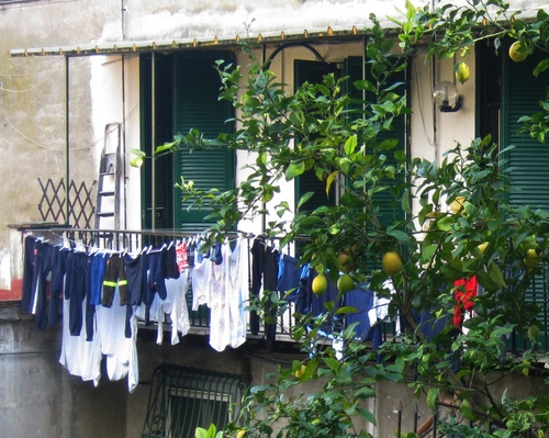Panni stesi in un cortile di Napoli.