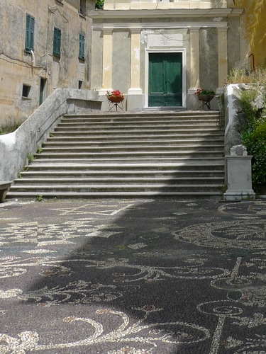La scalinata della chiesa di Santa Croce a Moneglia