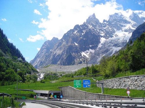 Comune di Courmayeur (AO) - Il fiume ed la morena del ghiacciaio della Brenva.