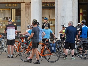 Velocipedi condotti rigorosamente a mano.