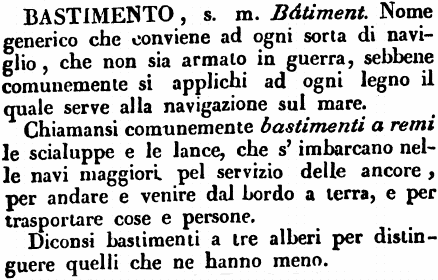 Commenti sulla voce «bastimento» | sottoscrizione